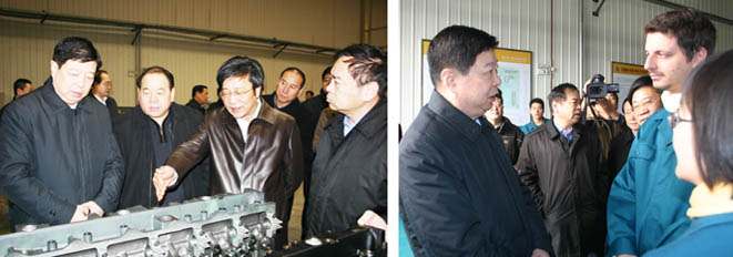 During the visit, Jiang looked carefully, inquiring about the advantage and the global technical level of MAN engines every now and then. When learning MAN plays a world leading role in quality and technical level and is up to Euro III to V standards, Jiang was delighted and nodded with smiles. Also, he frequently asked Ma and Cai around him about the details of the enterprise’s production technologies and orders. When being told the enterprise has got overflowing orders early this year, is running at full capacity and seizing the market opportunity for a flying start, Jiang smiled approvingly.