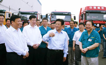 During the survey, Wang Zhaoguo asked about Sinotruk’s advanced technology, product quality control, workers' labor intensity, lives of workers, and trade union’s work, etc. in detail, and had understand the cooperation of Sinotruk with German Man, encouraging the enterprise reduce cost, improve quality, and increase efficiency.