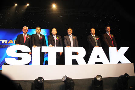 As the logo of SITRAK was lighted up, Ma announced the launch of SITRAK heavy-duty truck. All new SITRAK, representing achievements in Sinotruk-MAN capital and technical cooperation and pure German quality, was steered offline by Cai and Swigon.